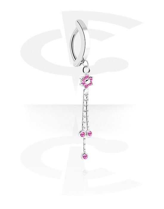 Belly button clicker (surgical steel, silver, shiny finish) with charm and crystal stones