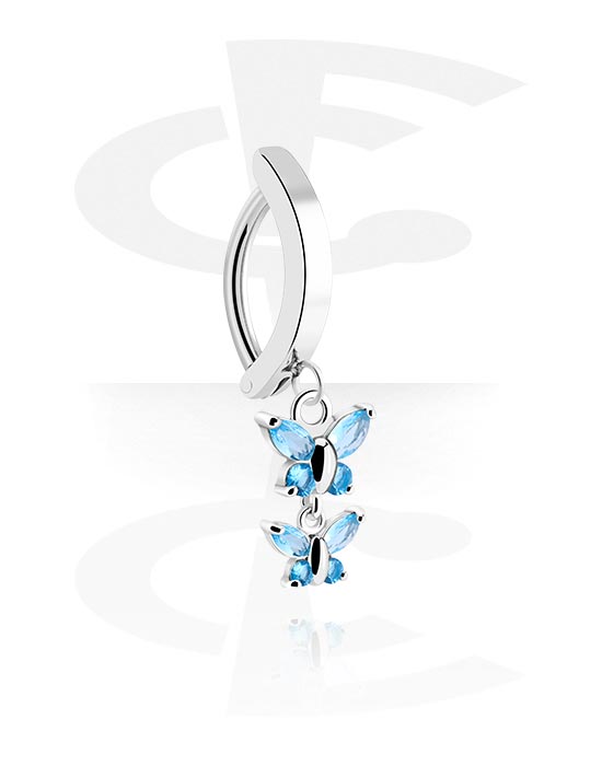 Belly button clicker (surgical steel, silver, shiny finish) with butterfly charm and crystal stones