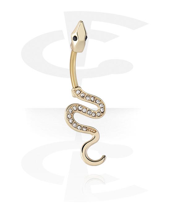 Belly button ring (surgical steel, gold, shiny finish) with snake design and crystal stones