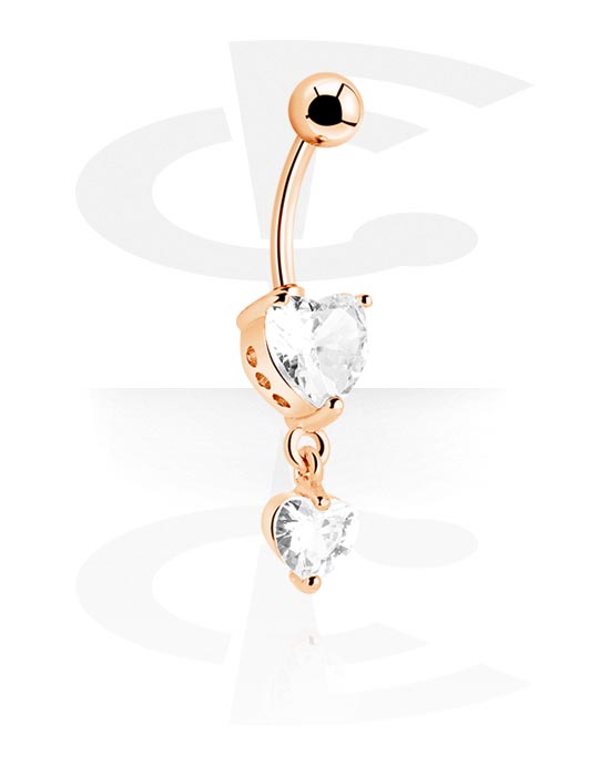 Belly button ring (surgical steel, rose gold, shiny finish) with heart design and crystal stones