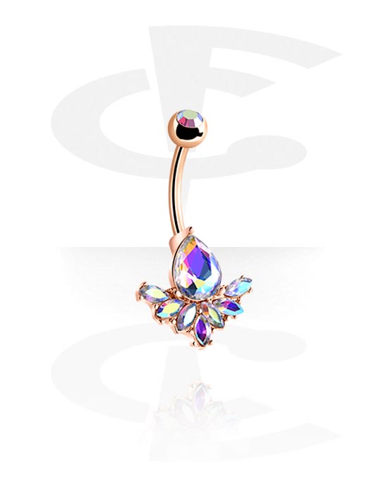 Belly button ring (surgical steel, rose gold, shiny finish) with crystal stones