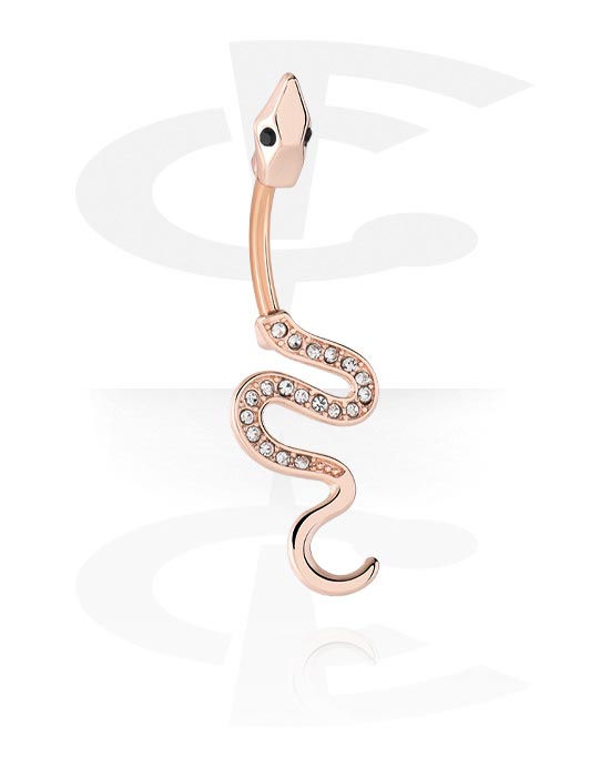 Belly button ring (surgical steel, rose gold, shiny finish) with snake design and crystal stones