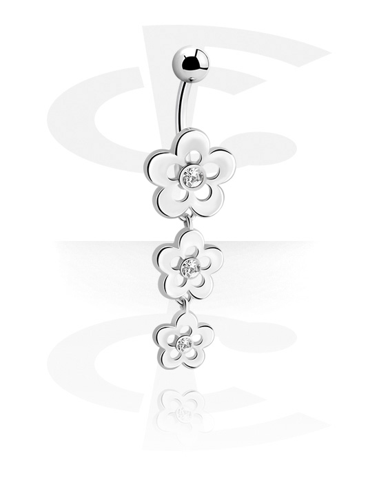 Belly button ring (surgical steel, silver, shiny finish) with flower charm and crystal stones