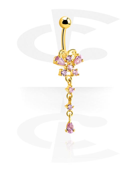 Belly button ring (surgical steel, gold, shiny finish) with charm and crystal stones