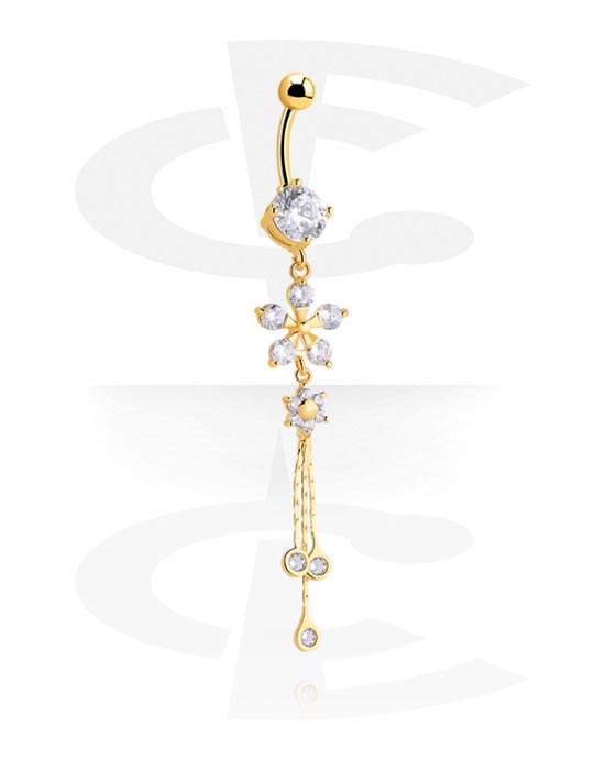 Belly button ring (surgical steel, gold, shiny finish) with charm and crystal stones