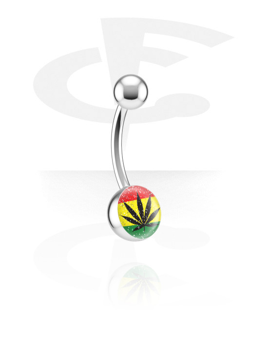 Belly button ring (surgical steel, silver, shiny finish) with Marijuana leaf and Jamaican colours