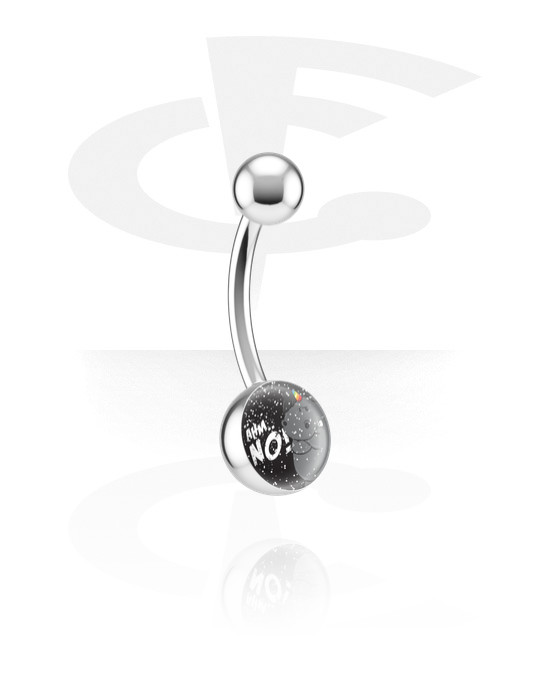 Belly button ring (surgical steel, silver, shiny finish) with grumpy unicorn design