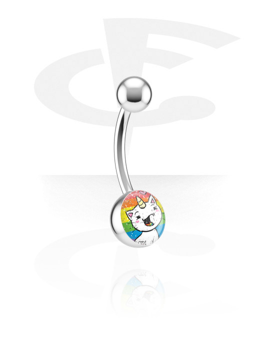 Belly button ring (surgical steel, silver, shiny finish) with Chubby Unicorn Design