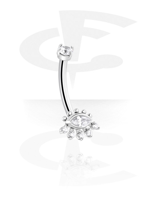 Belly button ring (surgical steel, silver, shiny finish) with eye design and crystal stones