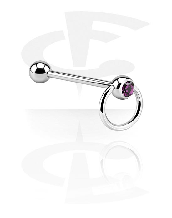 Barbell made of surgical steel featuring a ring and a small Jewelled ball. Super stylish!