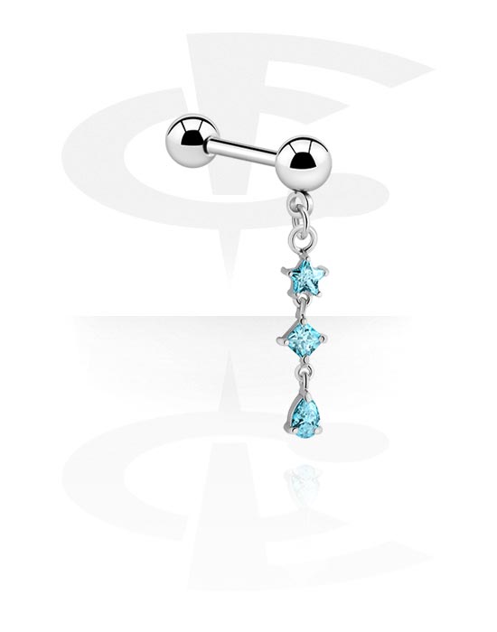 The available gauge is 1.2 mm. The available lengths are 4.5 mm to 12 mm. It comes with a ball size of 4 mm. Choose your favourite stonecolour: Aquamarine or Crystal. The pin and the balls made from surgical steel with plated brass charm. A totally stylish product that matches your style.