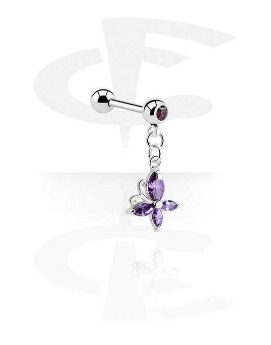 In stock with gauge of 1.2 mm. In stock with lengths from 4.5 mm up to 10 mm. It comes with a ball size of 4 mm. The stonecolour is a beautiful Amethyst. The pin and the balls made from surgical steel with plated brass charm. A totally chic product that matches your style.