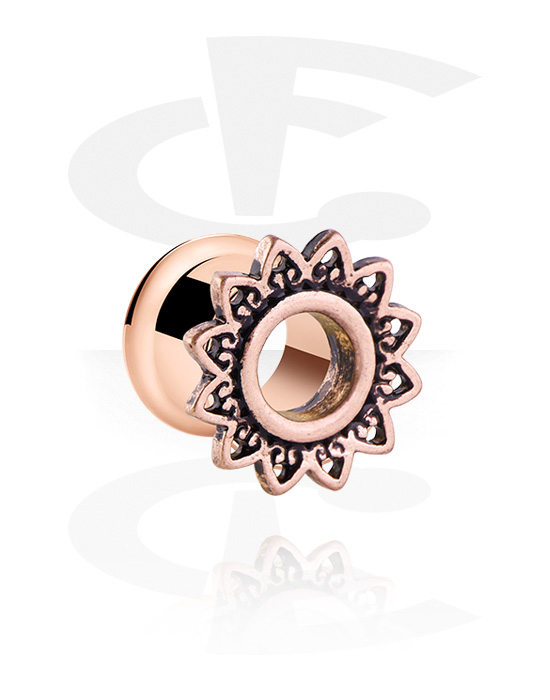 Double flared tunnel (surgical steel, rose gold, shiny finish) with vintage design