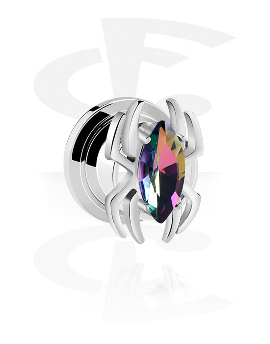 Screw-on tunnel (surgical steel, silver, shiny finish) with spider attachment and crystal stone