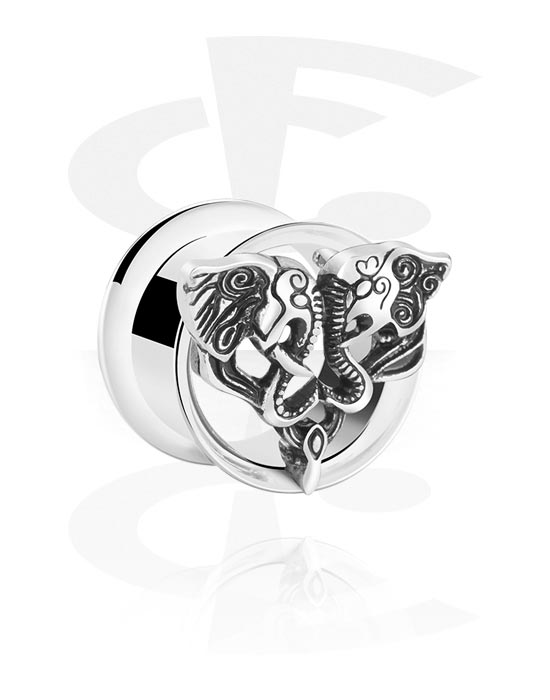 Double flared tunnel (surgical steel, silver, shiny finish) with elephant design