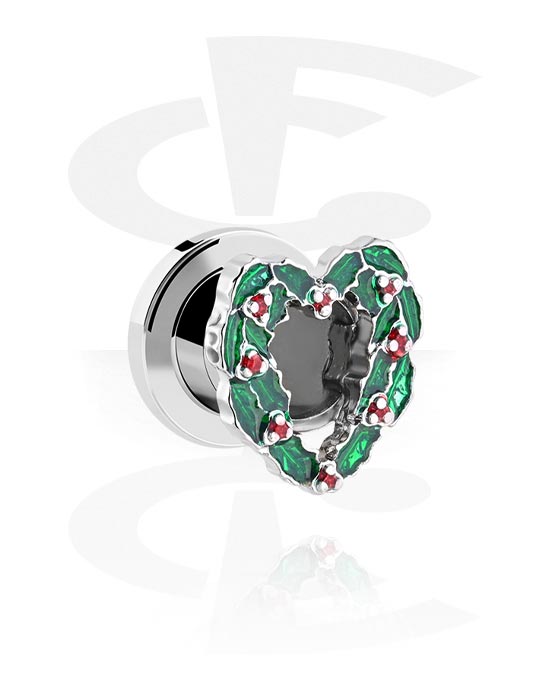 Screw-on tunnel (surgical steel, silver, shiny finish) with heart-shaped Christmas wreath