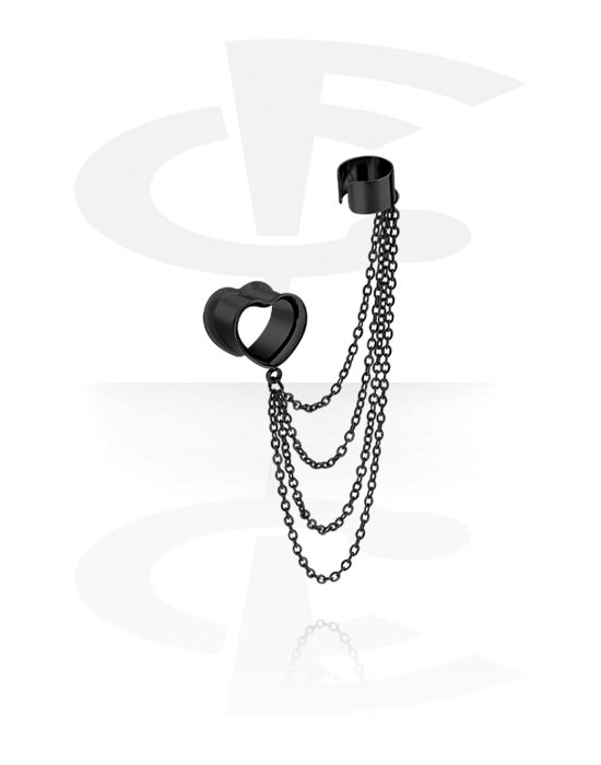 Heart-shaped double flared tunnel (surgical steel, black, shiny finish) with chain