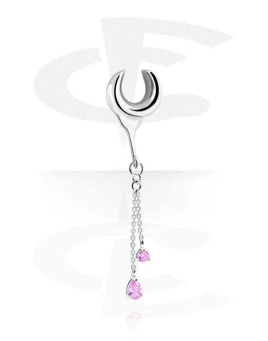 Half tunnel (surgical steel, silver, shiny finish) with charm and crystal stones