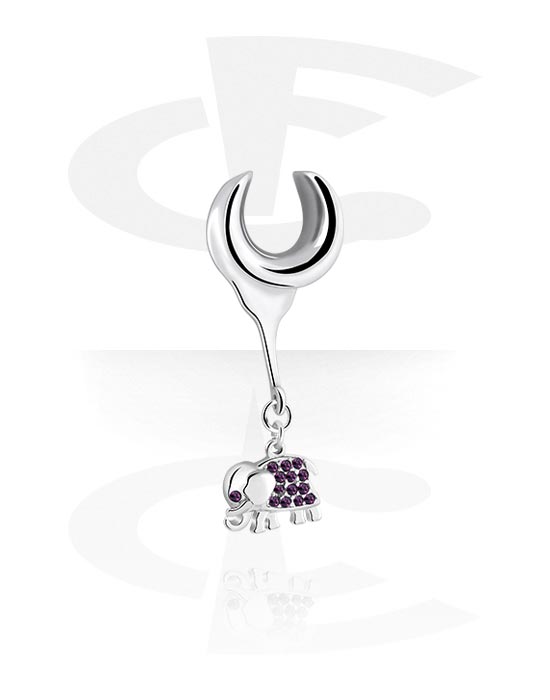 Half tunnel (steel, silver, shiny finish) with elephant charm and crystal stones
