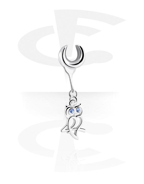 Half tunnel (surgical steel, silver, shiny finish) with owl charm and crystal stones