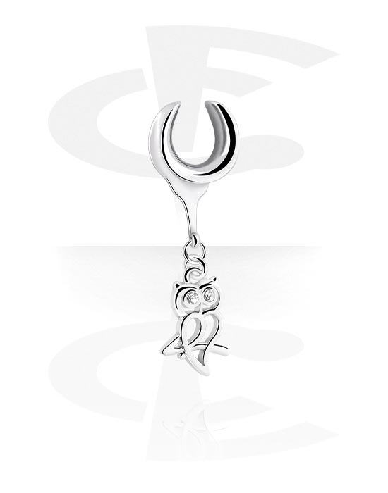 Half tunnel (surgical steel, silver, shiny finish) with owl charm and crystal stones