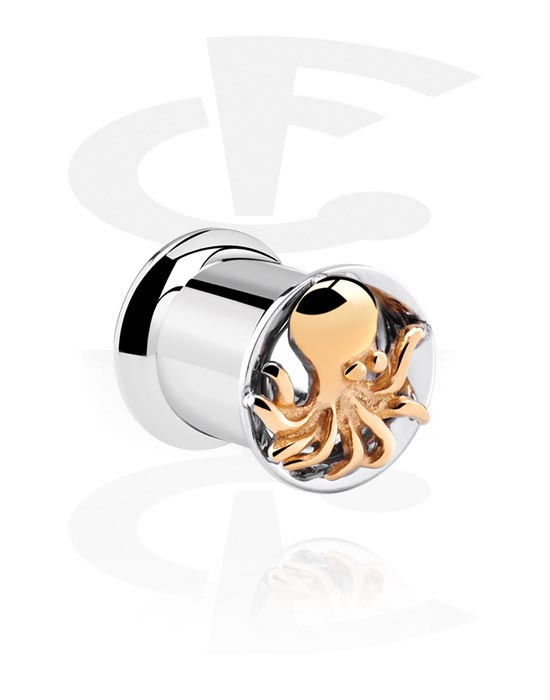 Double flared tunnel (surgical steel, silver, shiny finish) with octopus design