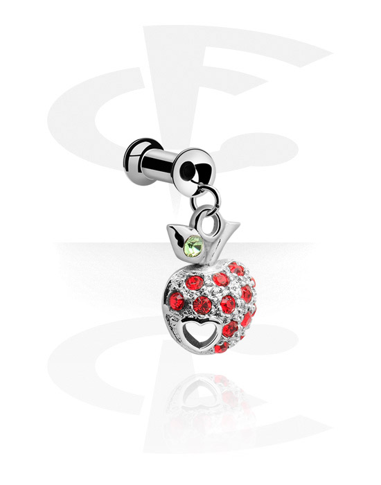 Double flared tunnel (surgical steel, silver, shiny finish) with apple charm and crystal stones