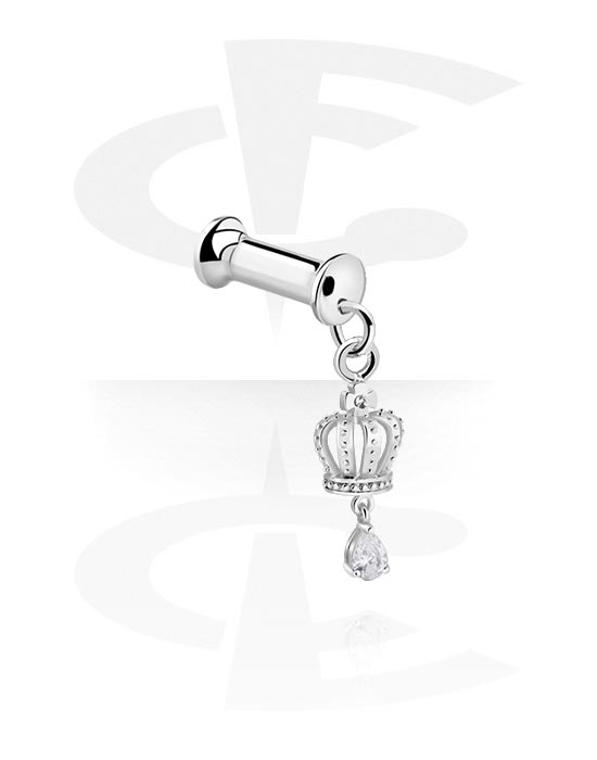 Double flared tunnel (surgical steel, silver, shiny finish) with crown charm and crystal stone