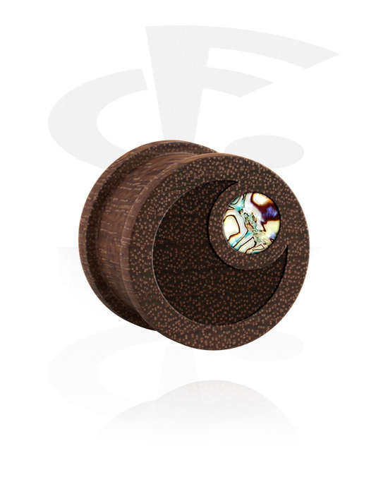 Ribbed plug (wood) with laser engraving "half moon" and imitation mother of pearl inlay