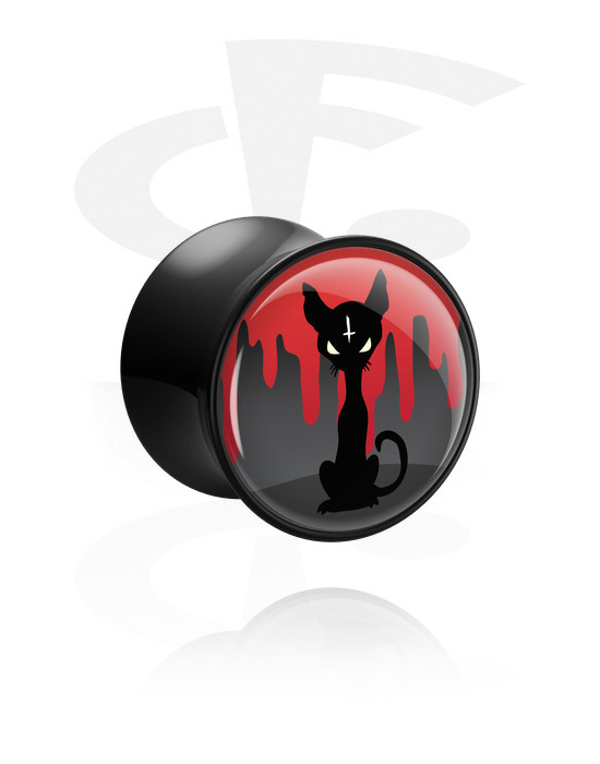 Black double flared acrylic designer plug straight from your favourite Factory Please note: As many of our customers stretch their ears to different sizes, all our plugs, tunnels and stretching tools are sold as singles. If you'd like a pair, please add two of the same item to the cart.