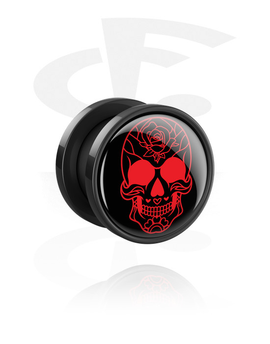 Screw-on tunnel (acrylic, black) with sugar skull "Dia de Los Muertos" design in various colours
