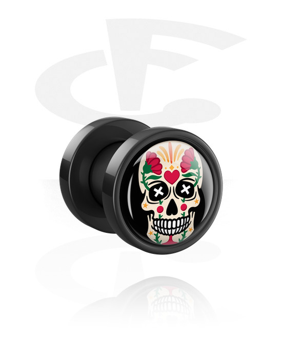 Screw-on tunnel (acrylic, various colors) with sugar skull "Dia de Los Muertos" design