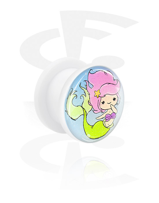 Printed Glitter Flesh Tunnel with exclusive Crapwaer design, made of white acrylic.