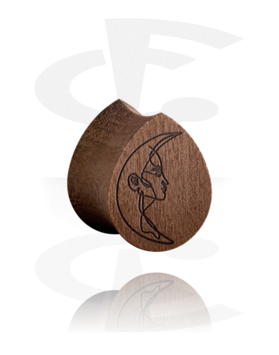 Tear-shaped double flared plug (wood) with laser engraving "half moon with face"
