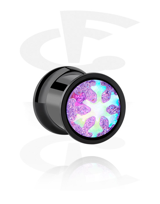 Double flared tunnel (surgical steel, black, shiny finish) with snowflake design in various colours