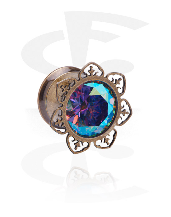 In stock with diameters from 8 mm up to 16 mm. The stonecolour is a beautiful Aurora Borealis. Grab this elegant product right now before someone else does! Please note: As many of our customers stretch their ears to different sizes, all our plugs, tunnels and stretching tools are sold as singles. If you'd like a pair, please add two of the same item to the cart.