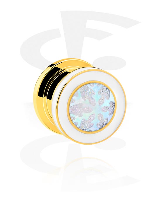 Screw-on tunnel (surgical steel, gold, shiny finish) with snowflake design in various colours