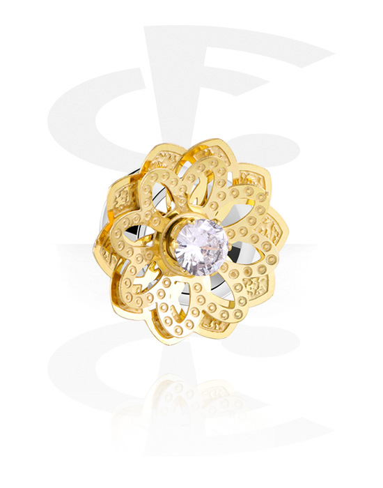 Double flared tunnel (surgical steel, silver, shiny finish) with flower attachment and crystal stone