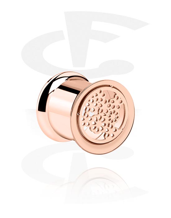 Double flared tunnel (surgical steel, rose gold, shiny finish) with flower design