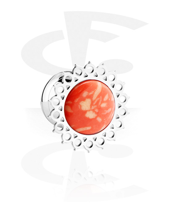 Double flared tunnel (surgical steel, silver, shiny finish) with vintage design