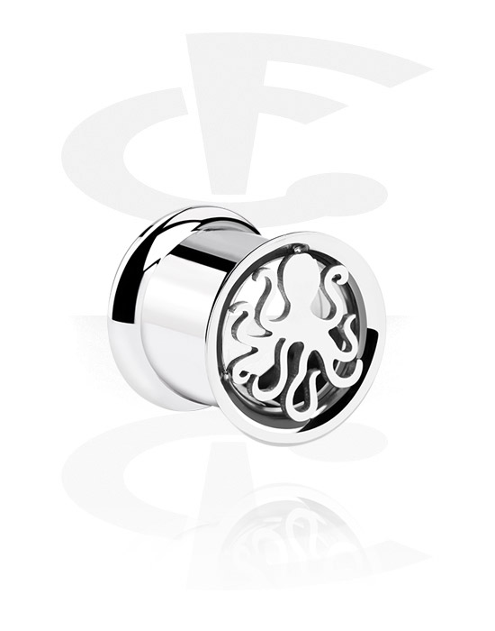 Double flared tunnel (surgical steel, silver, shiny finish) with octopus design