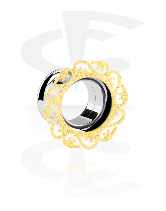 Double flared tunnel (surgical steel, silver, shiny finish) with golden attachment