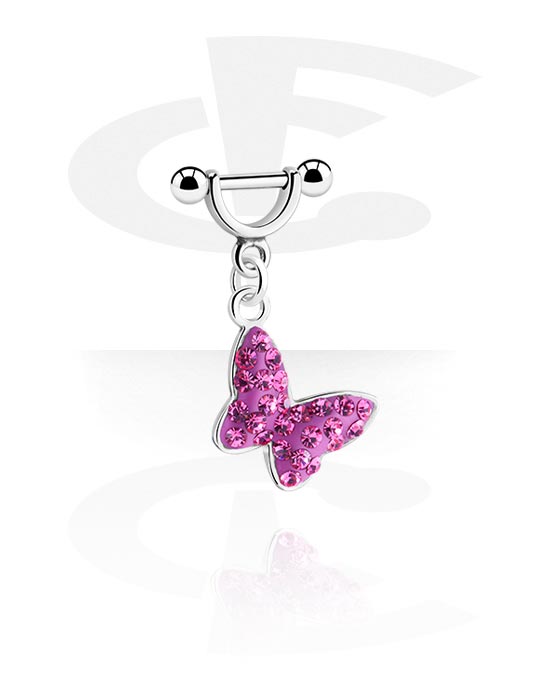 The available gauge is 1.2 mm. The available length is 5.5 mm. The shield made from surgical steel with plated brass charm. Choose your favourite stonecolour: Aurora Borealis or Rose. Grab this chic product right now before someone else does!