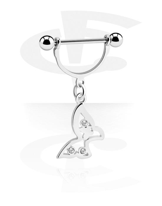 The available gauge is 1.6 mm. In stock with lengths from 8 mm up to 18 mm. Choose your favourite from our selection of stone colours, ranging from Aquamarine to Rose. The shield made from surgical steel with plated brass charm. Grab this trendy product right now before someone else does!