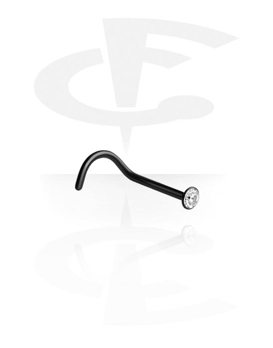 Curved nose stud (surgical steel, black, shiny finish) with crystal stone