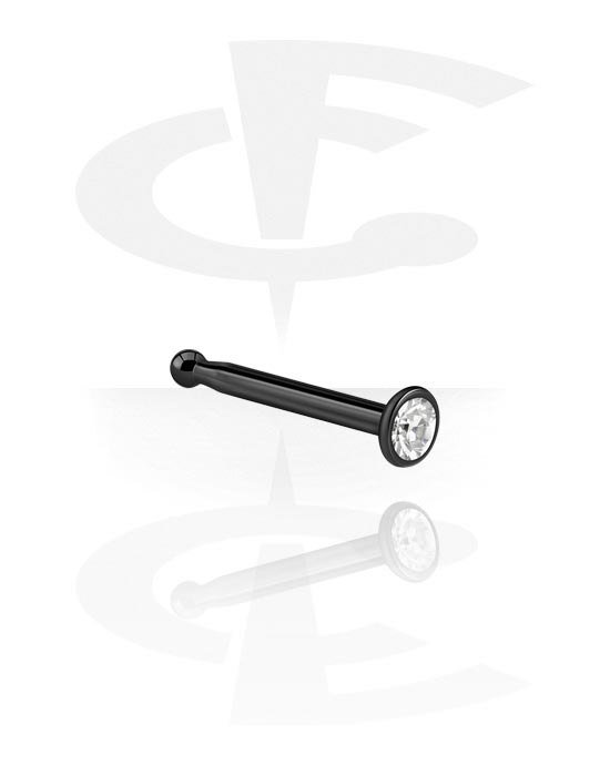 Straight nose stud (surgical steel, black, shiny finish) with crystal stone