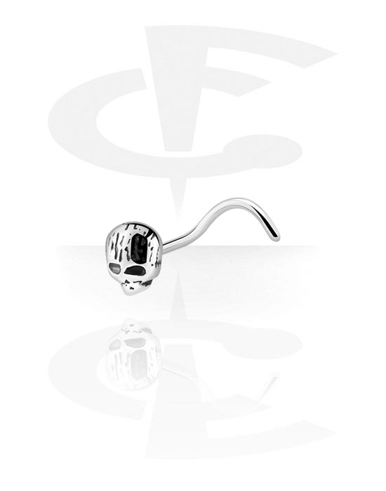 Curved nose stud (surgical steel, silver, shiny finish) with skull design