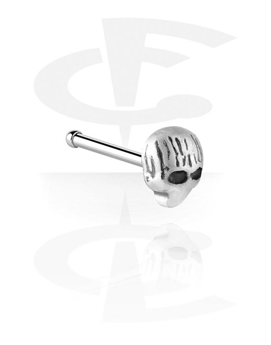 Straight nose stud (surgical steel, silver, shiny finish) with skull design