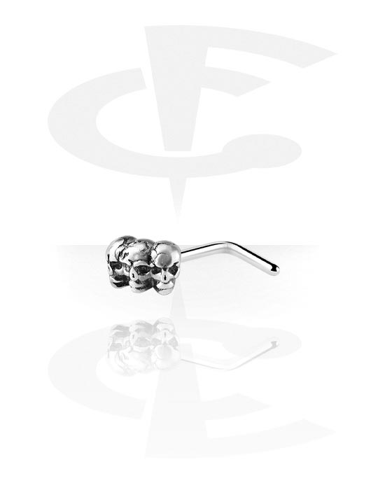 L-shaped nose stud (surgical steel, silver, shiny finish) with skull design