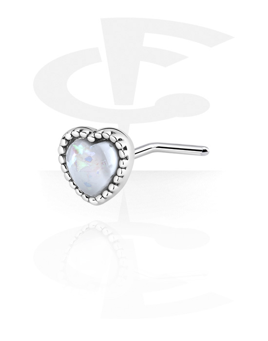 L-shaped nose stud (surgical steel, silver, shiny finish) with heart design